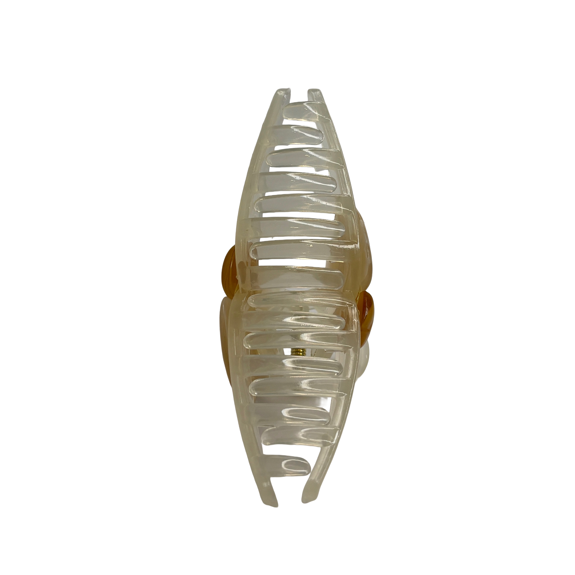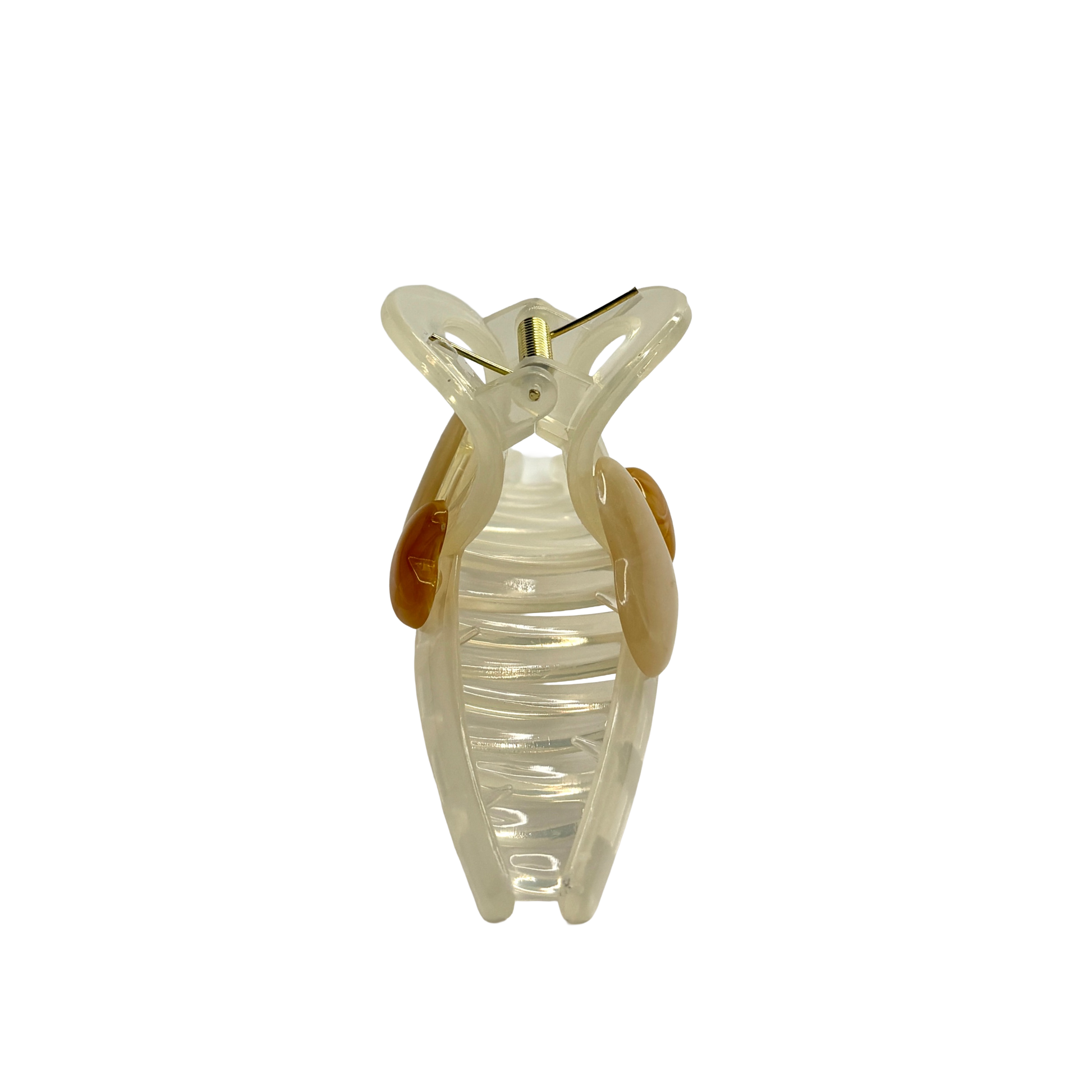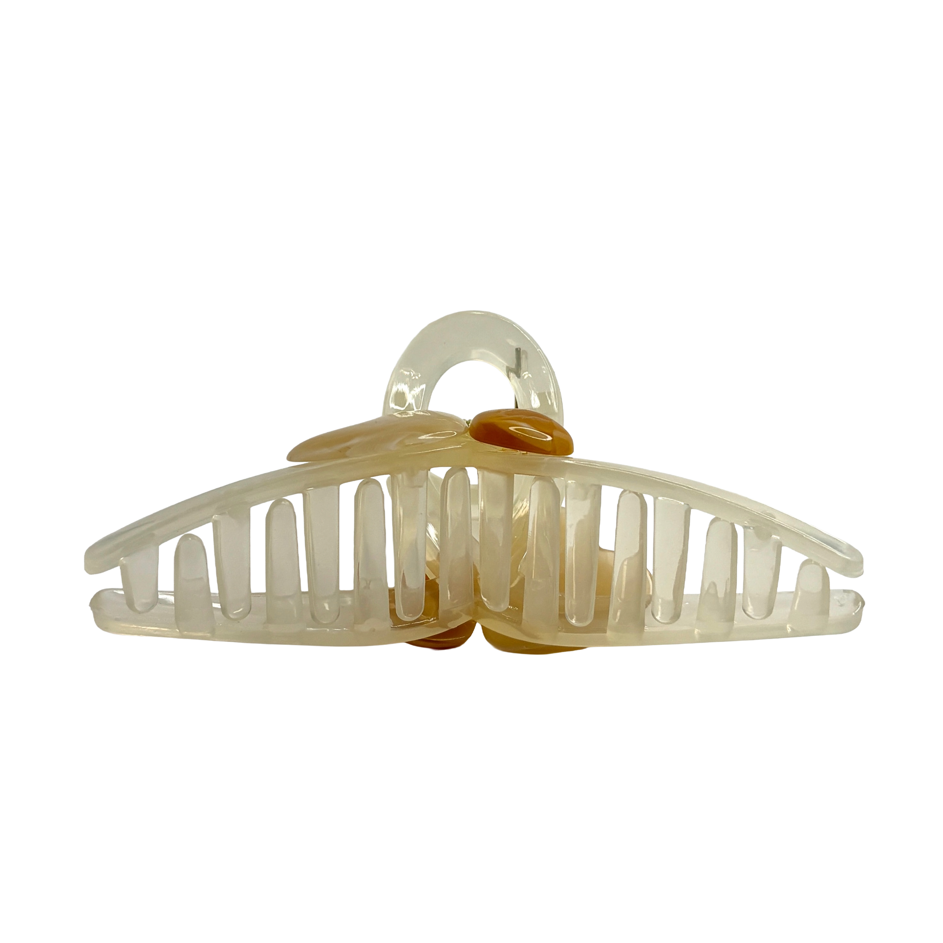 Ge din styling en mjuk och drömsk inramning med Creamy Honey. Denna vackra hårklämma vilar på en mjölkvit, offwhite bas som ger ett lugnt och lyxigt intryck. Designen pryds av två hjärtan i harmoniska toner av varm honung och mjuk beige, vilket skapar en tidlös färgpalett som enkelt matchar säsongens alla outfits.