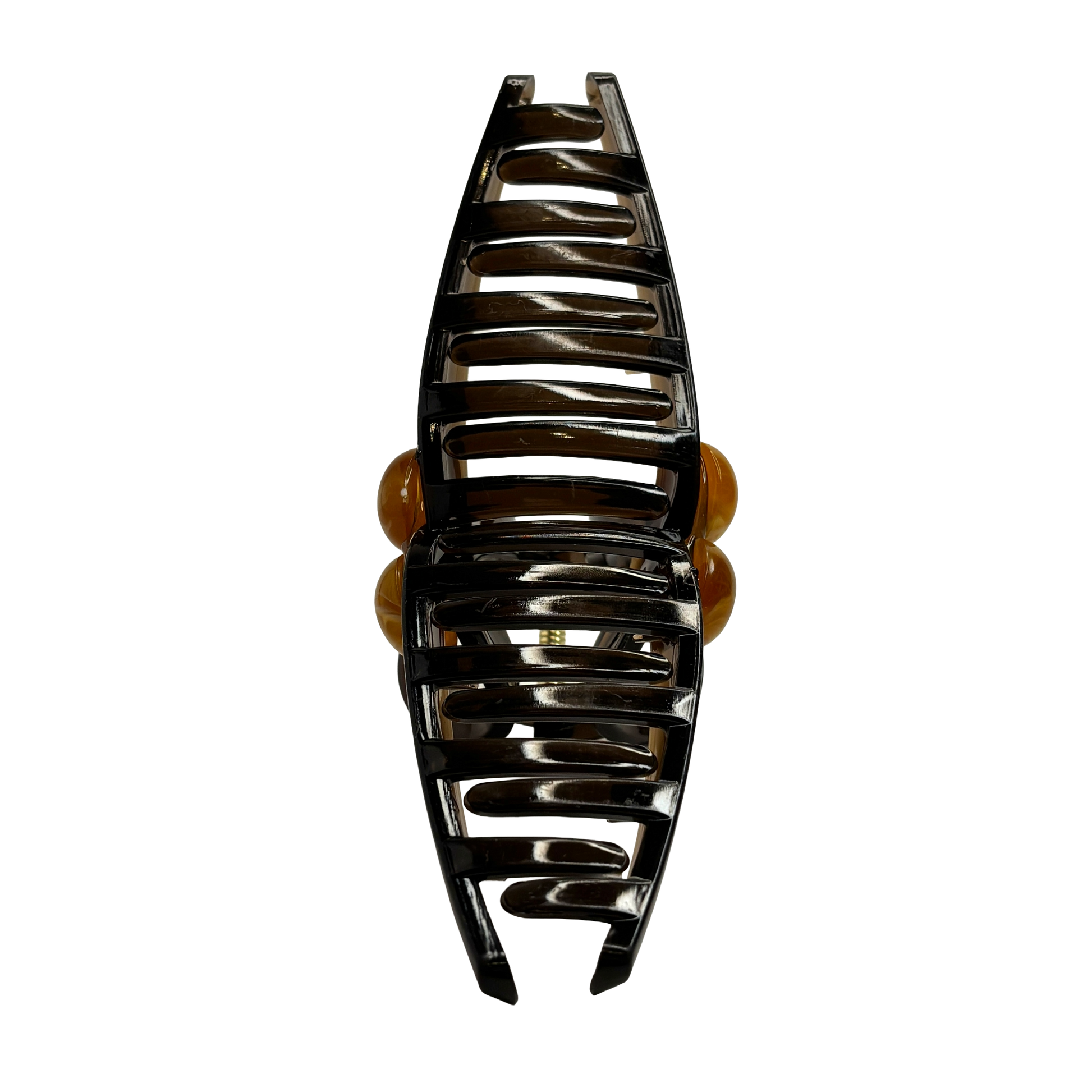 Kraftfull fixeringsförmåga: Den spänstiga metallfjädern och de noggrant placerade tänderna ger ett orubbligt grepp som håller ditt hår på plats oavsett intensiteten i din dag.