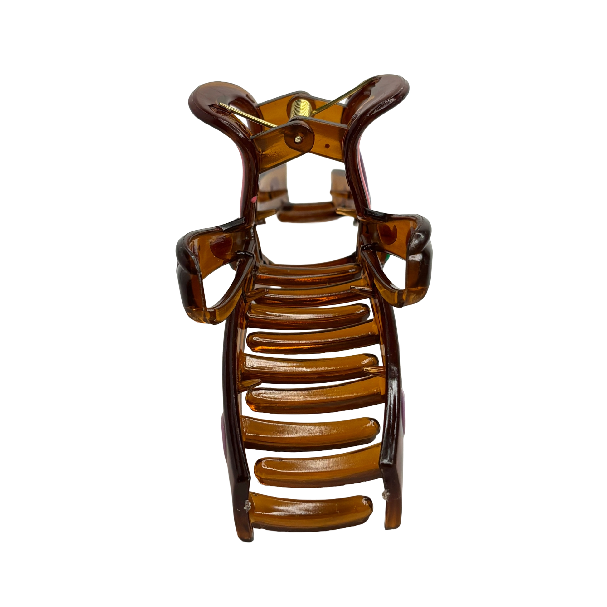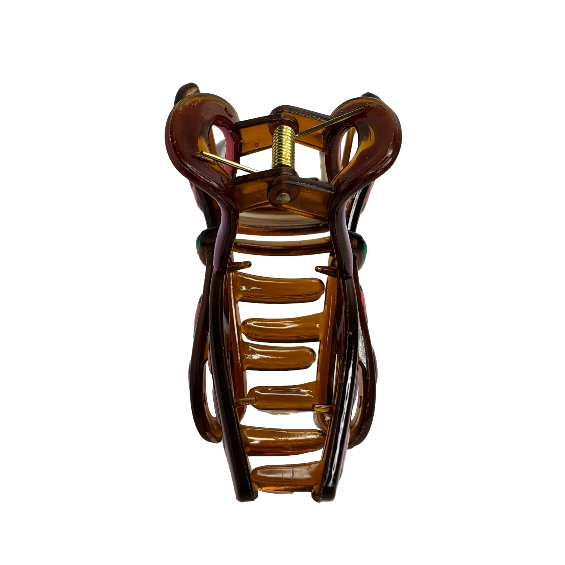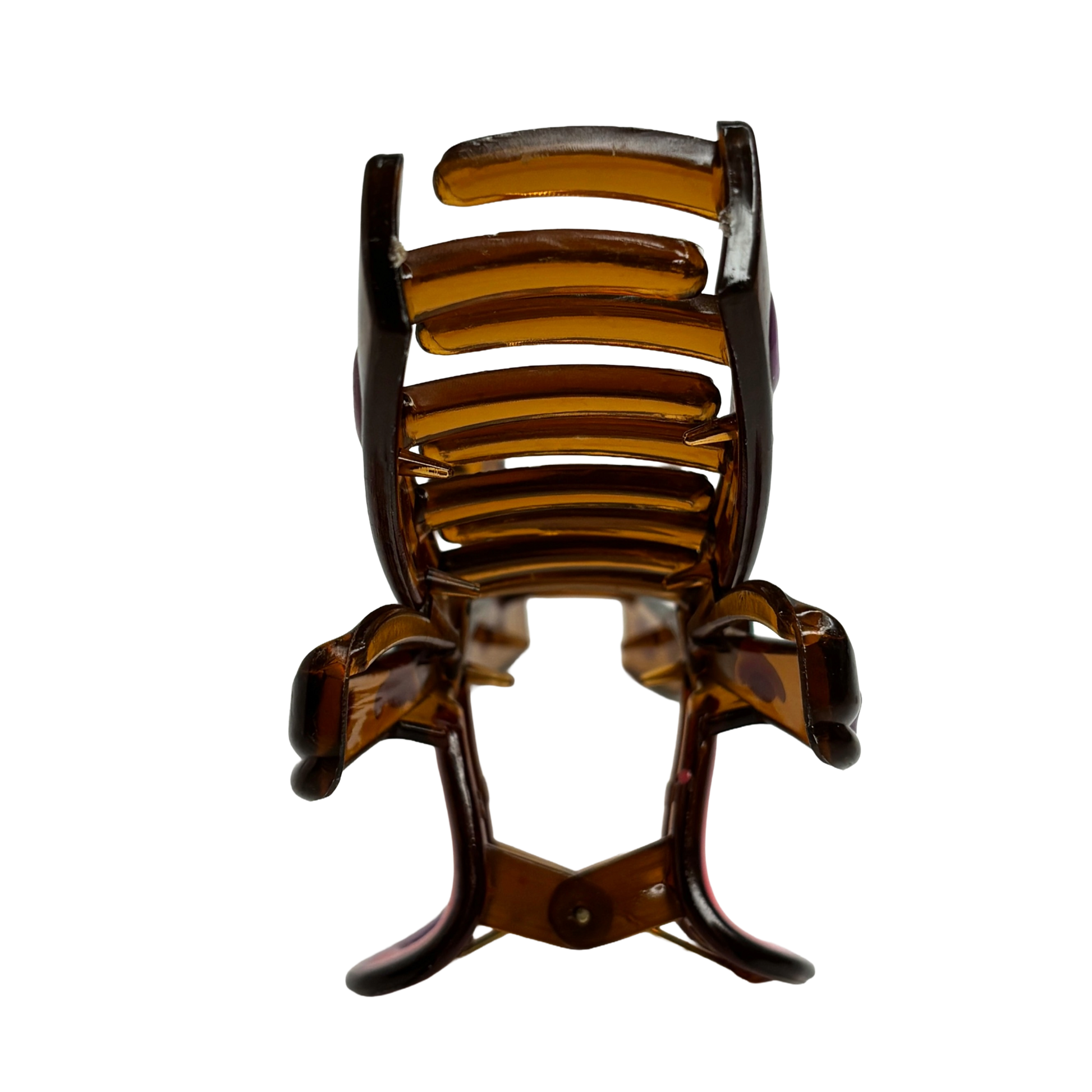 Unik rosettformad estetik: Den skulpturala designen efterliknar en knuten rosett, vilket ger en tredimensionell effekt i ditt hår. Den transparenta bärnstenstonen skapar ett vackert djup som framhäver de glada färgstänken i mönstret.