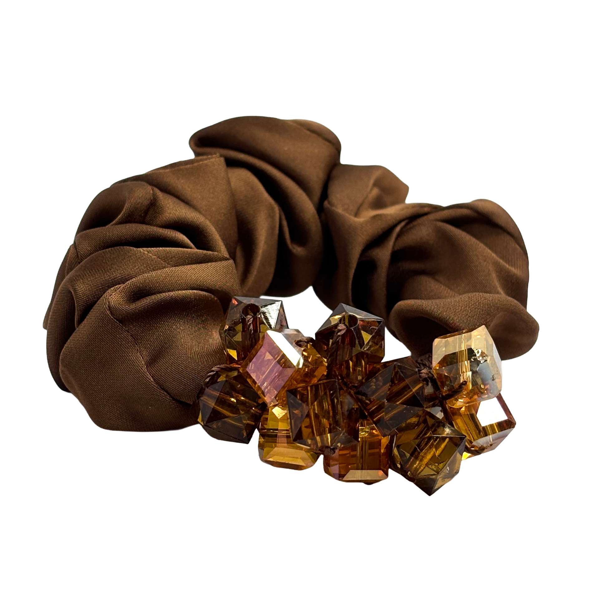 Ge din styling en glödande och exklusiv karaktär med Burnt Terracotta, en accessoar där varje detalj strålar av värme. Denna unika skapelse förenar en bas i djupt chokladbrun textil med ett magnifikt kluster av glaskristallpärlor. Med en genomgående röd underton som reflekteras i både tyget och kristallerna skapas ett förtrollande färgdjup som lyfter varje frisyr till en ny nivå av lyx.