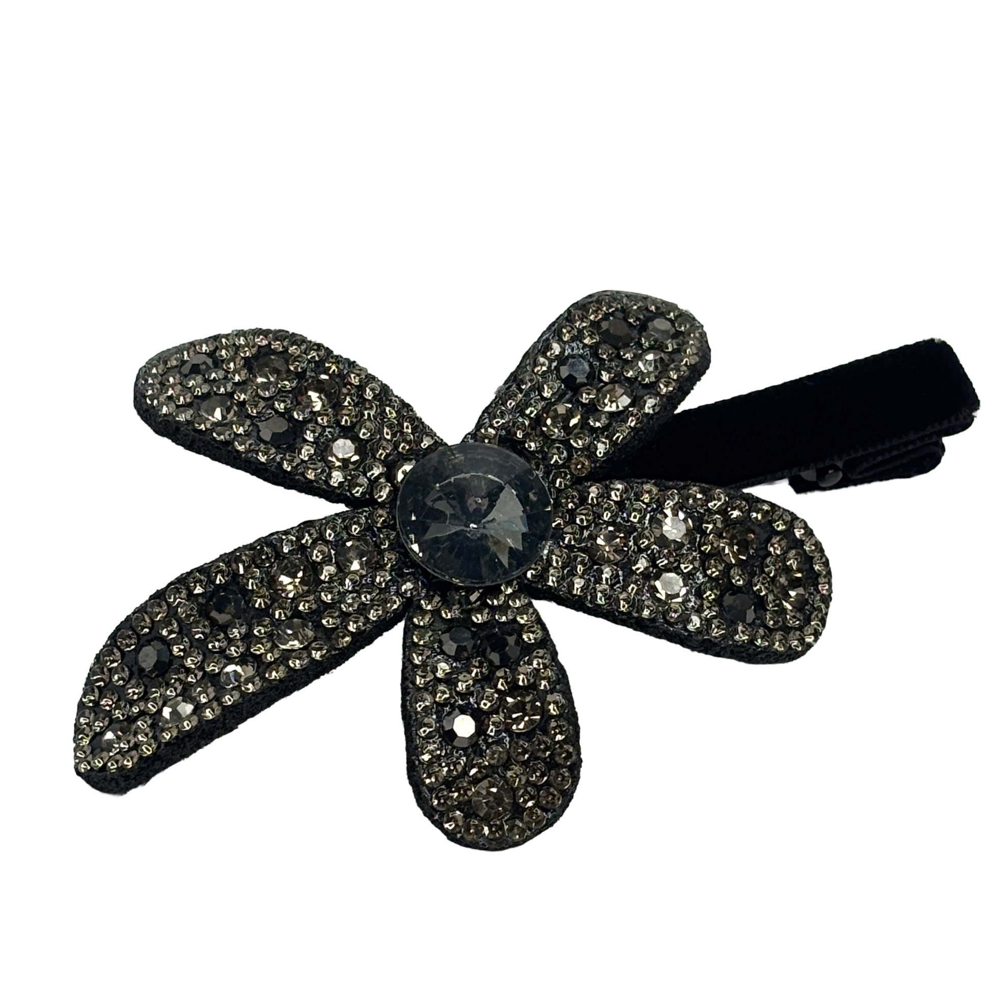 Gnistrande detaljrikedom: Blomman är dekorerad med noggrant utvalda stenar som ger en fantastisk lyster och gör klämman till ett blickfång oavsett hur du bär den.