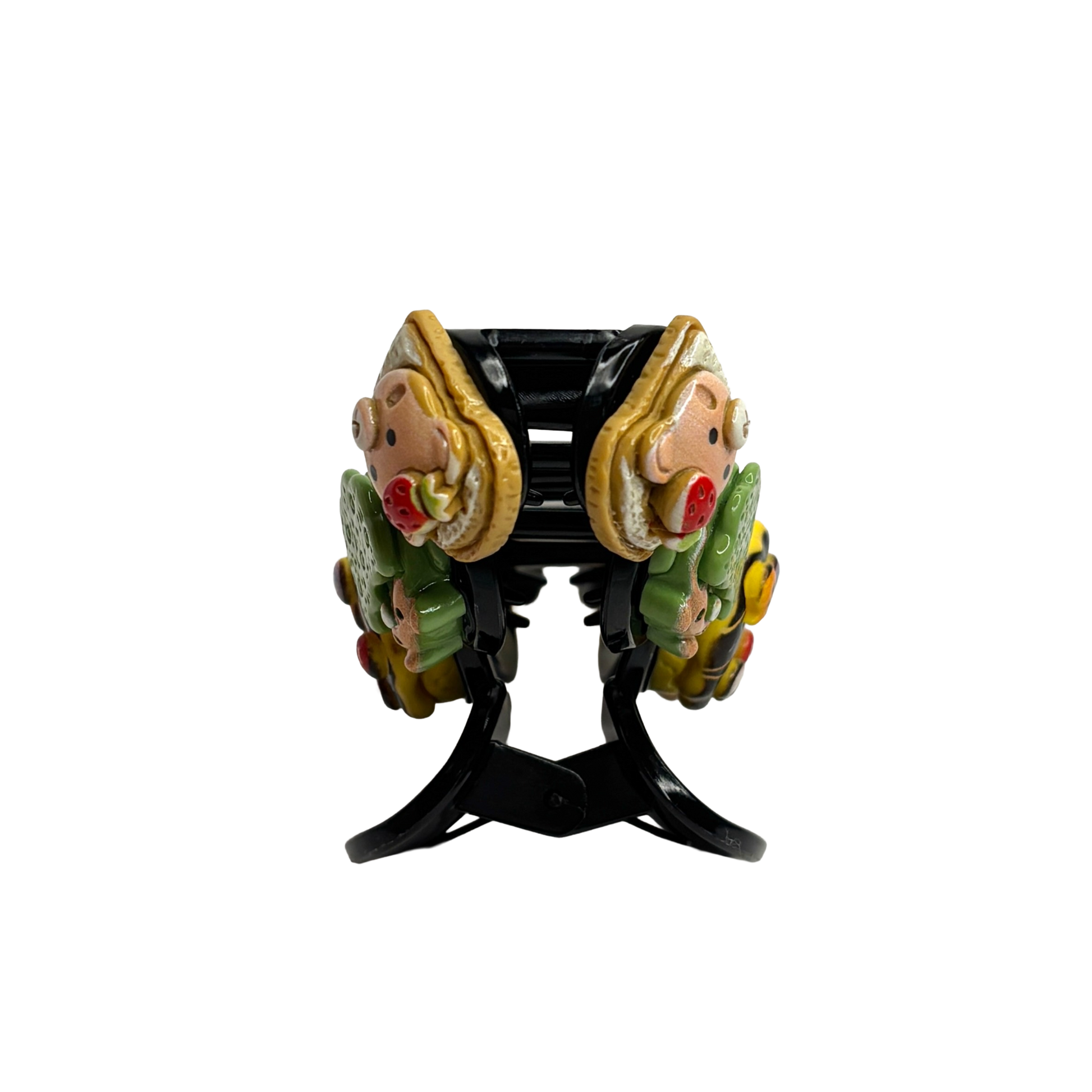 Skulptural 3D-effekt: De handplacerade figurerna i form av björnar, munkar och chokladbitar är skapade i en tredimensionell form. Det ger klämman ett fantastiskt djup och en levande karaktär som drar blickarna till sig från alla vinklar.
