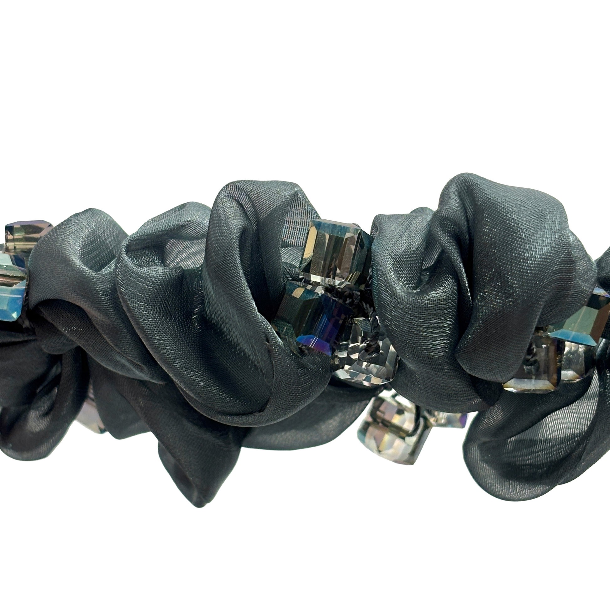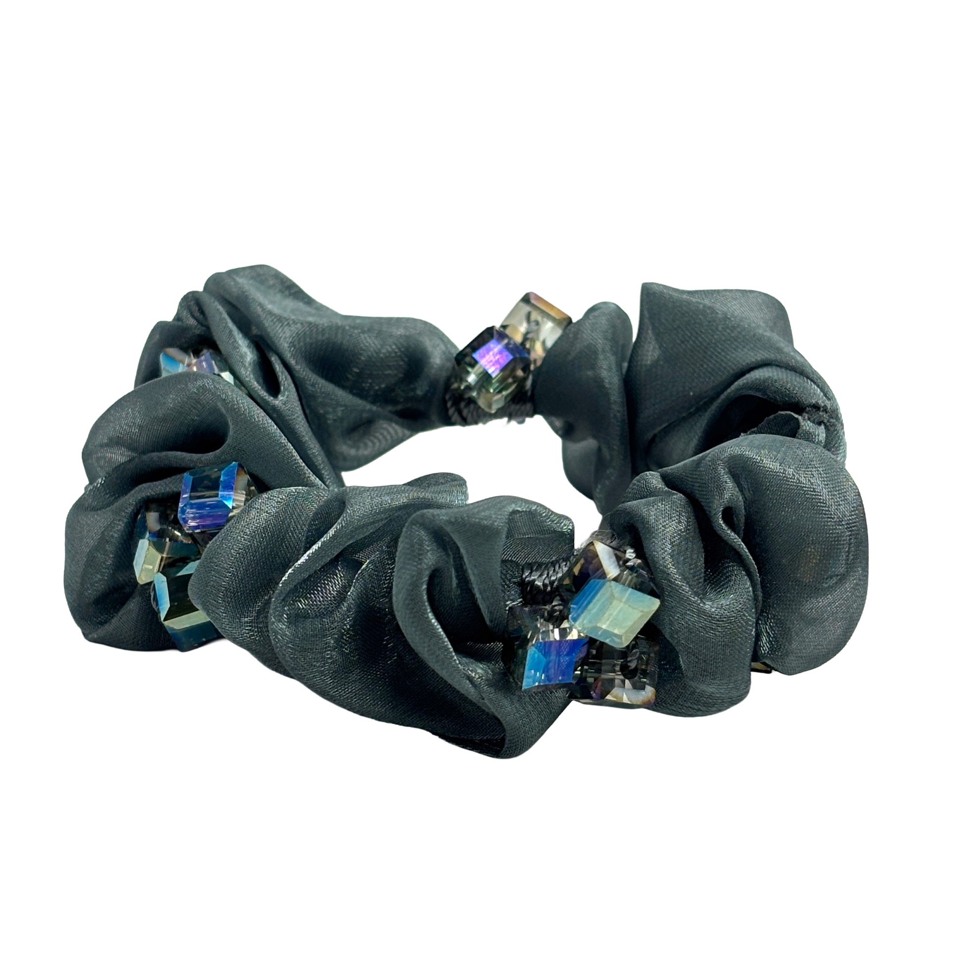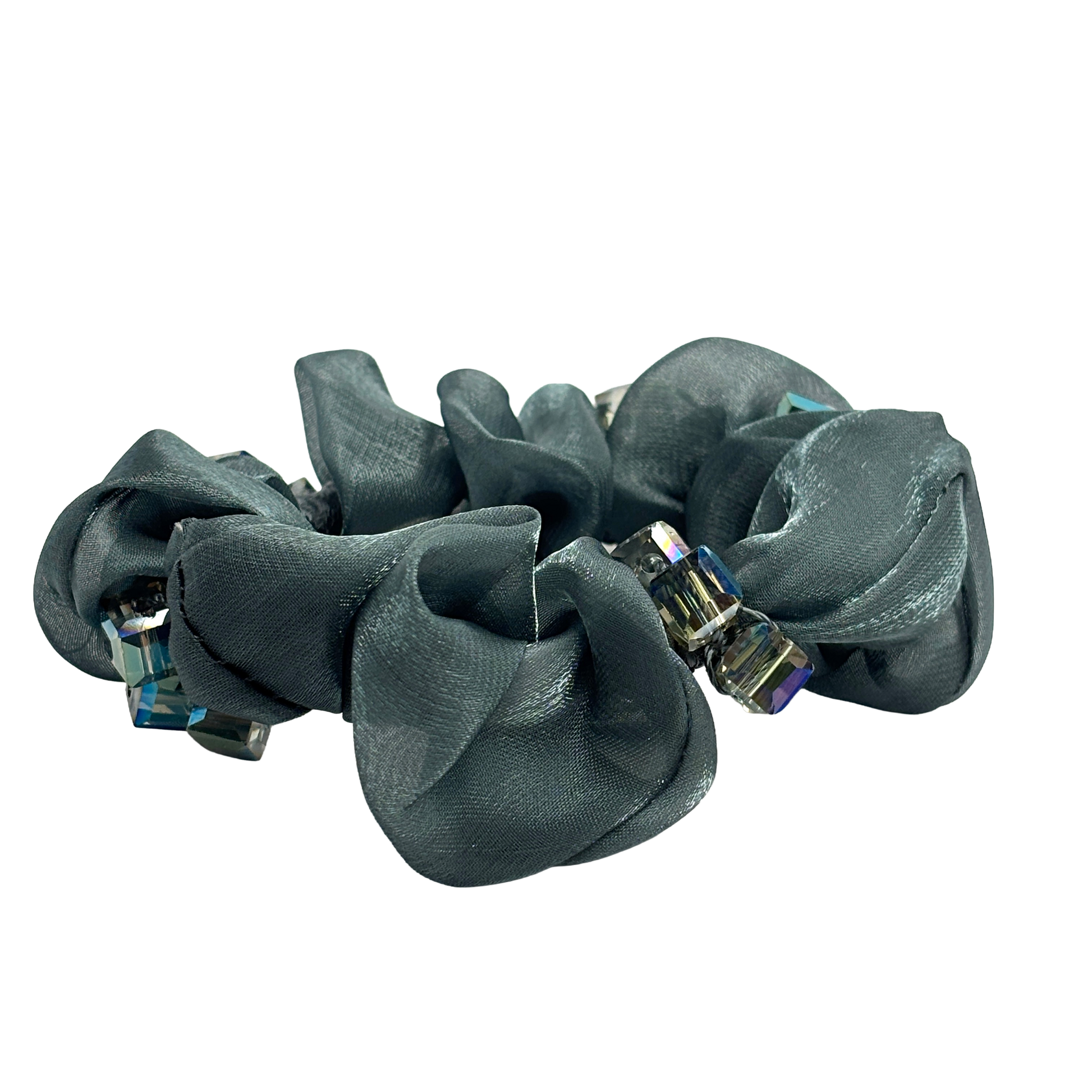Ge din styling en djup och förtrollande karaktär med Forest Jewel. Denna exklusiva scrunchie i en fyllig skogsgrön nyans är tillverkad i ett skirt mesh-material och pryds av stora, gnistrande glaskristaller. Den mörka, naturnära basen får kristallerna att poppa ordentligt, vilket skapar en sofistikerad look som känns lika lyxig som ett smycke för ditt hår.