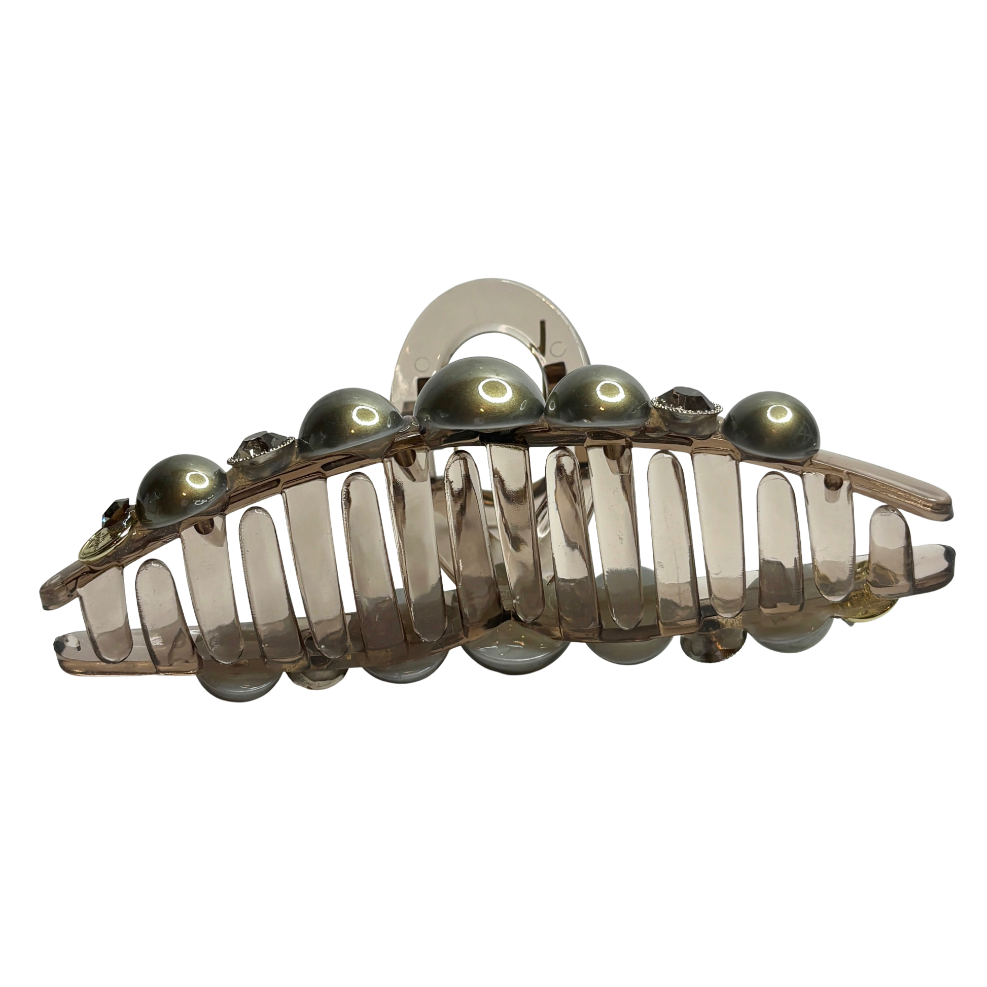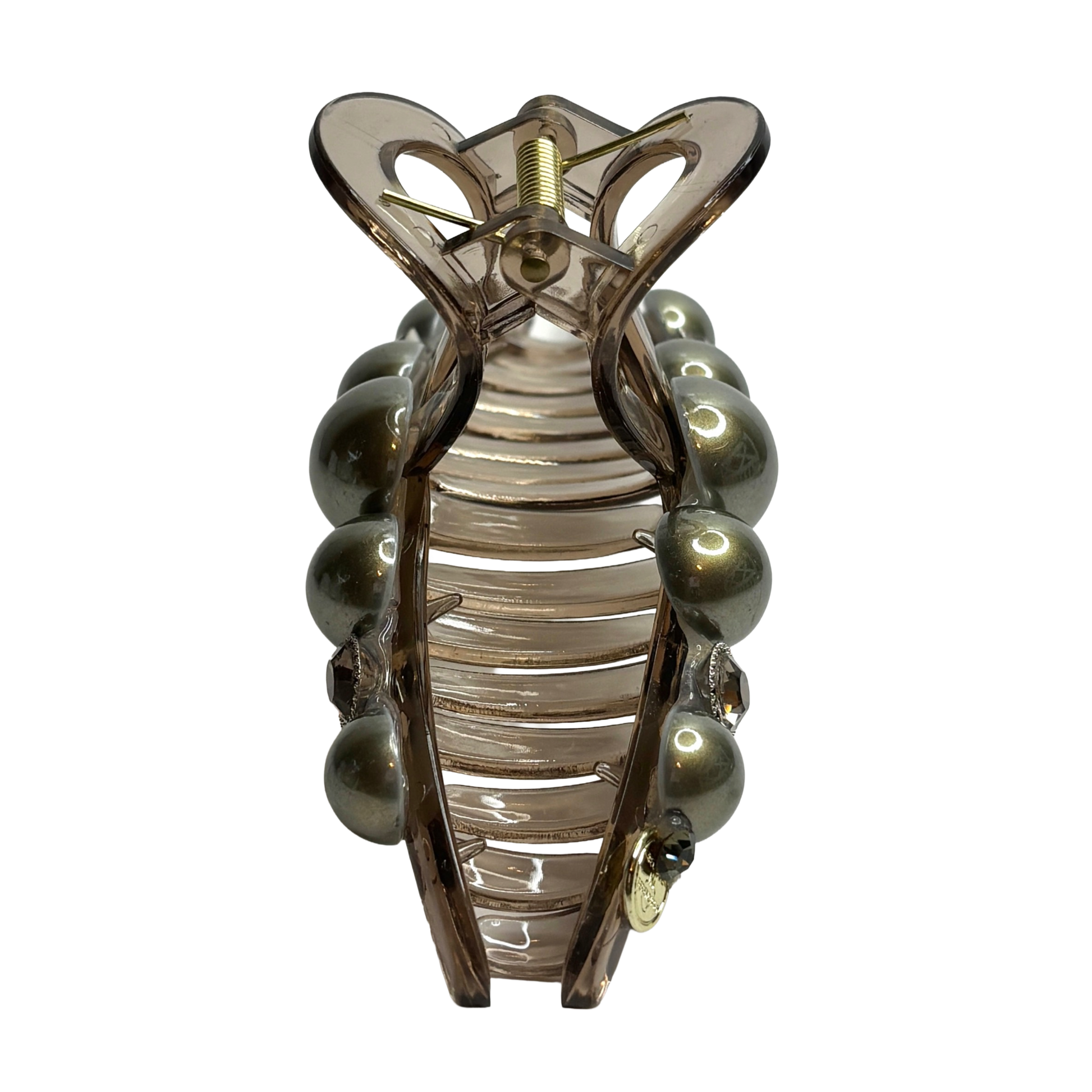 Arkitektonisk stabilitet: Bakom dekorationsstenarna döljer sig en konstruktion av högsta kvalitet. Den kraftfulla fjädern och de diskreta greppiggarna arbetar i harmoni för att säkerställa att din look förblir orubblig oavsett tempo.