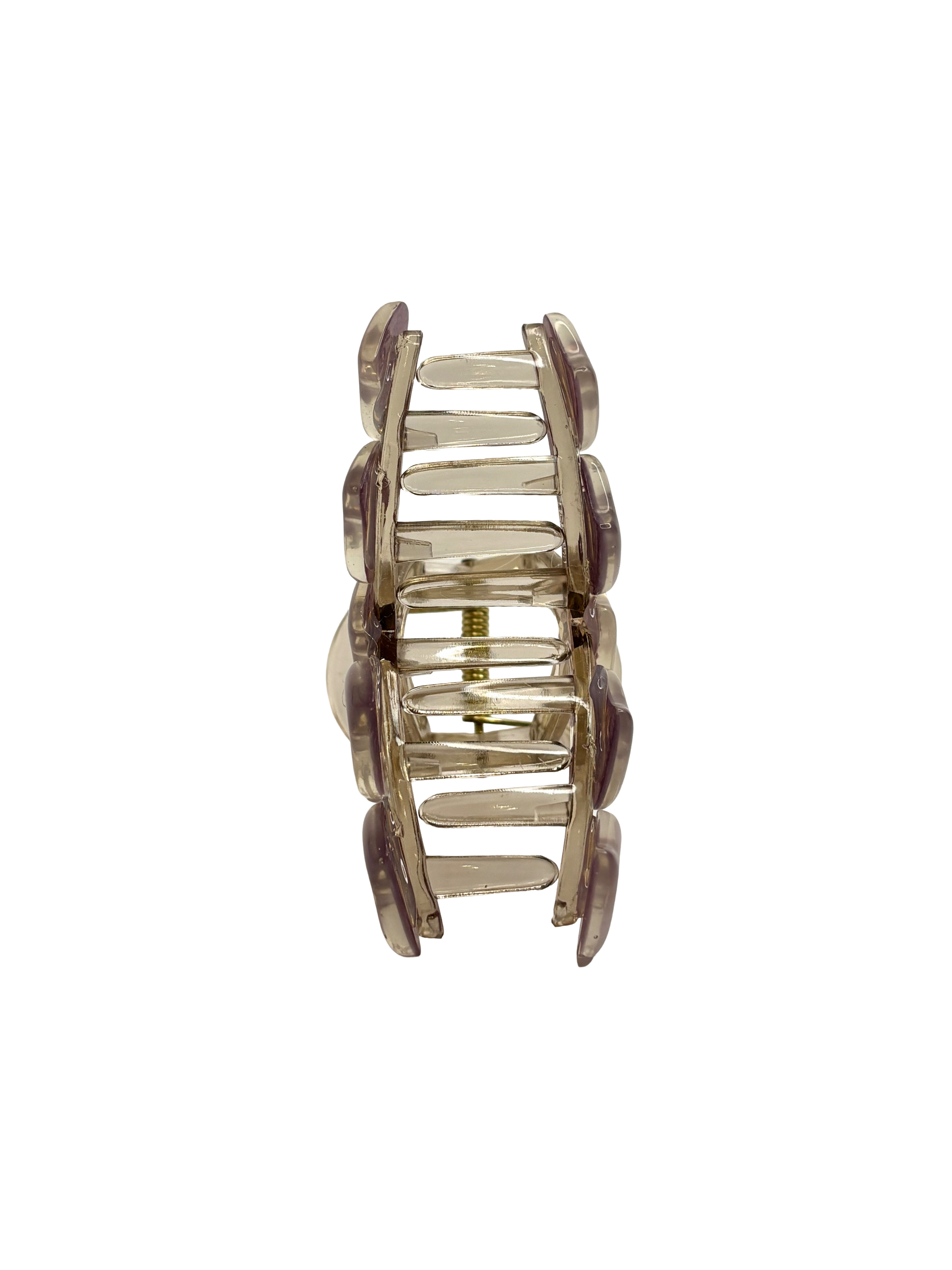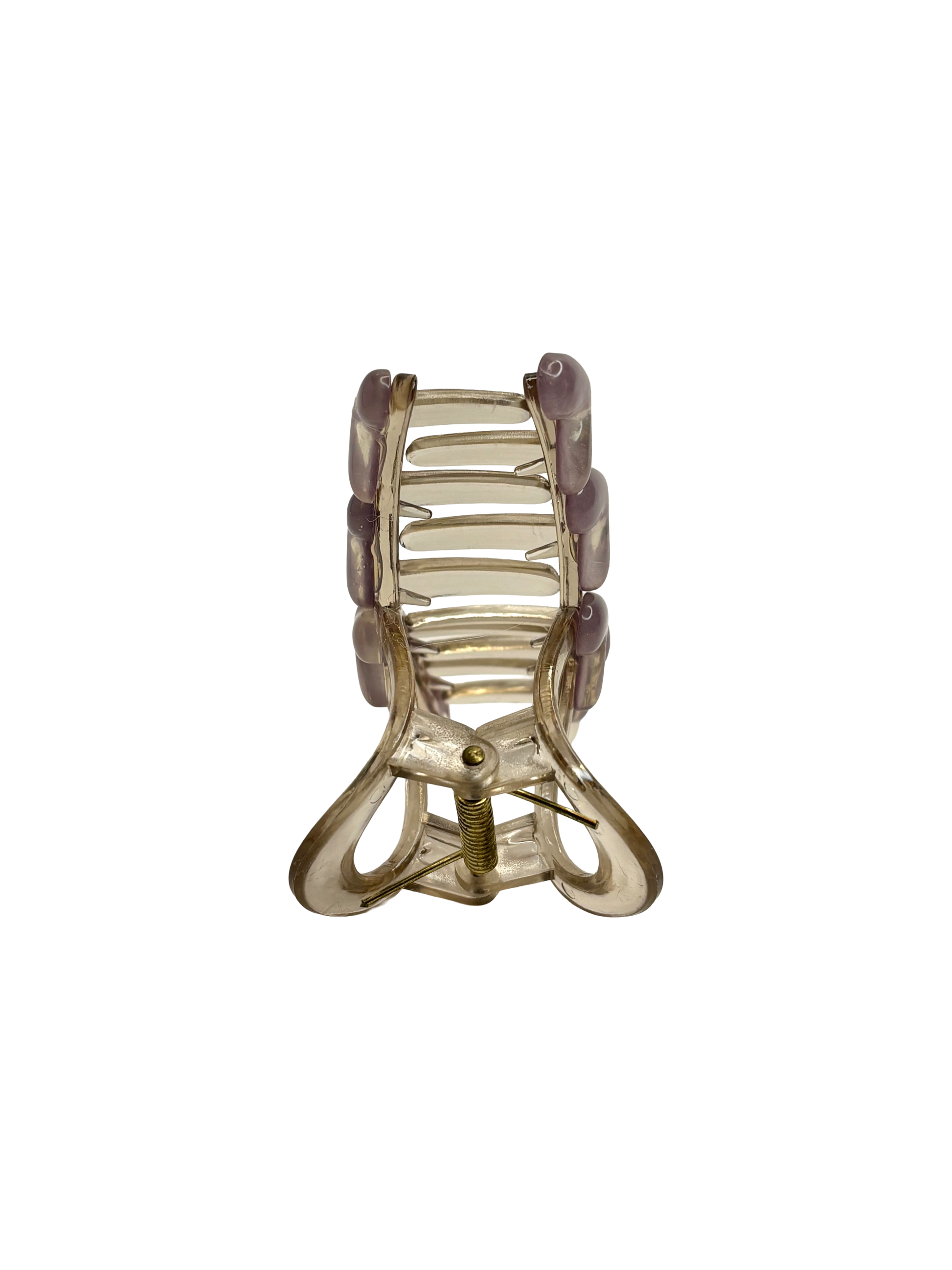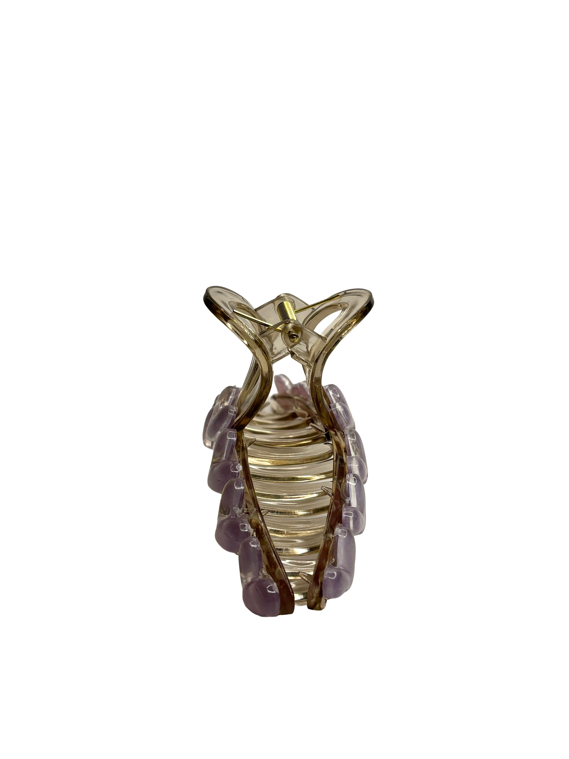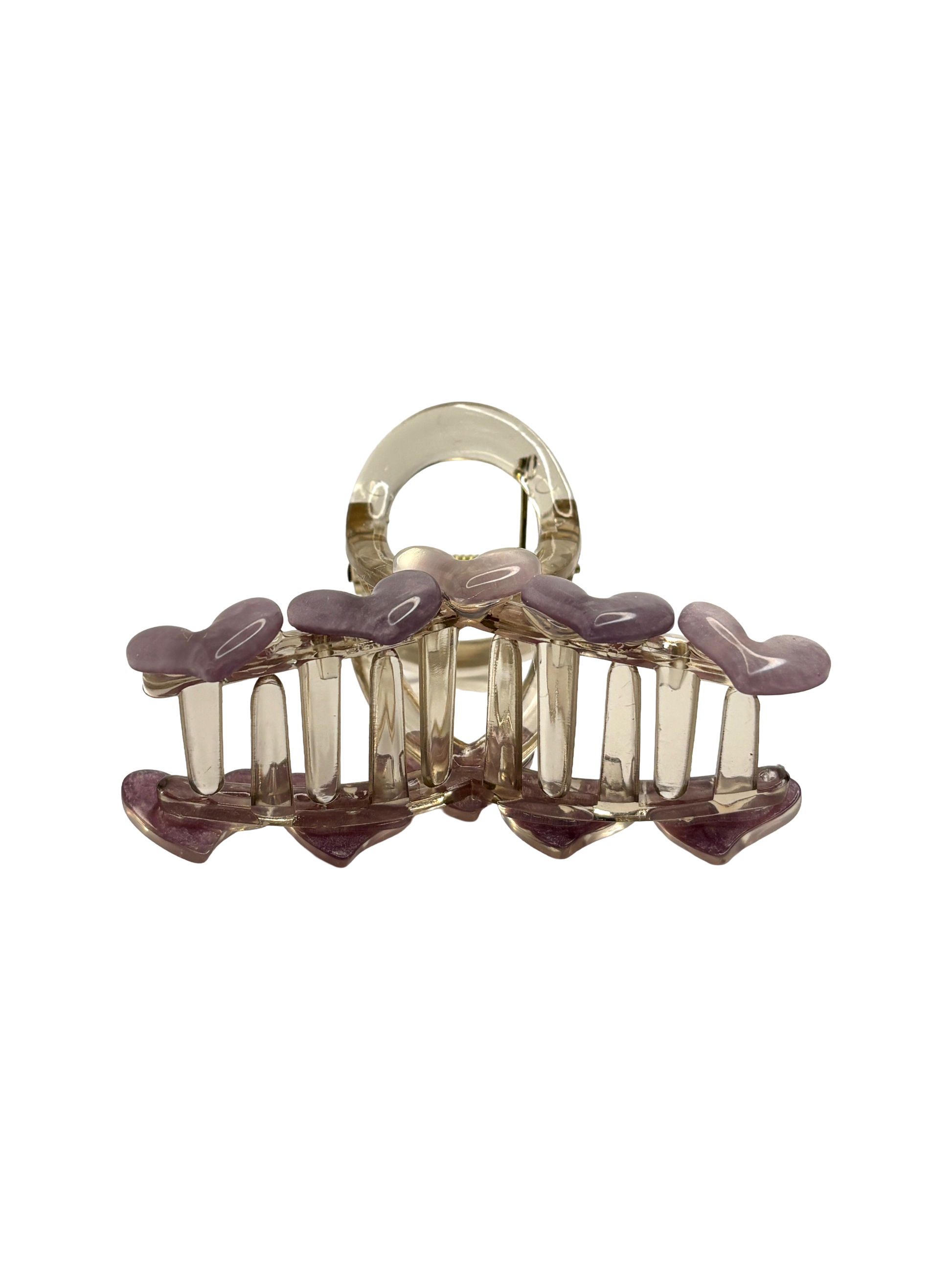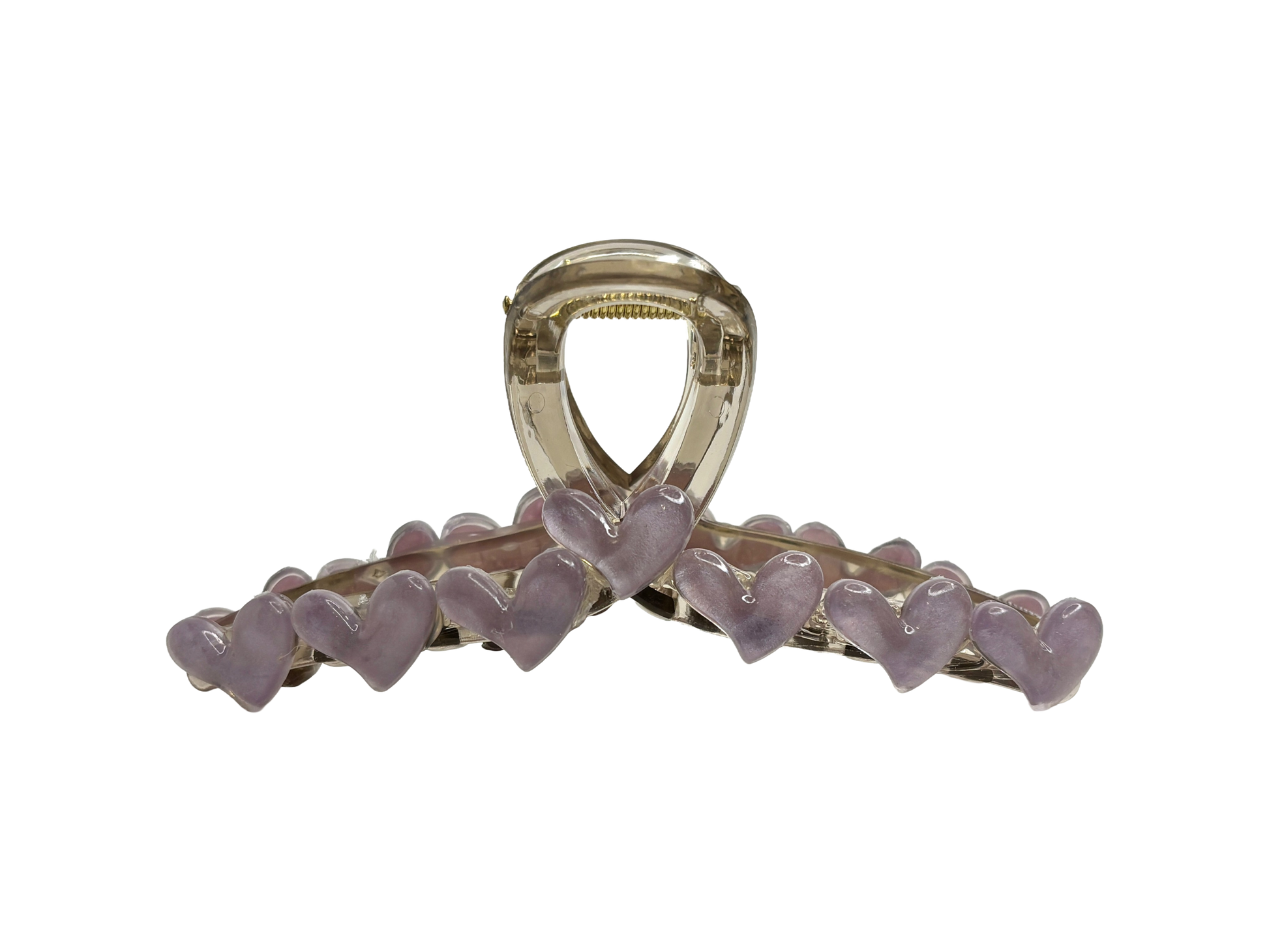 Låt ditt hår omfamnas av ren kärlek. Lilac Lepidolite är en hyllning till det mjuka och feminina, där en rad av vackra hjärtan i en djup lila nyans pryder en transparent bas. Det är den perfekta accessoaren för att addera en touch av romantik till din outfit, oavsett om du siktar på en sofistikerad vardagslook eller vill glänsa lite extra vid speciella tillfällen.