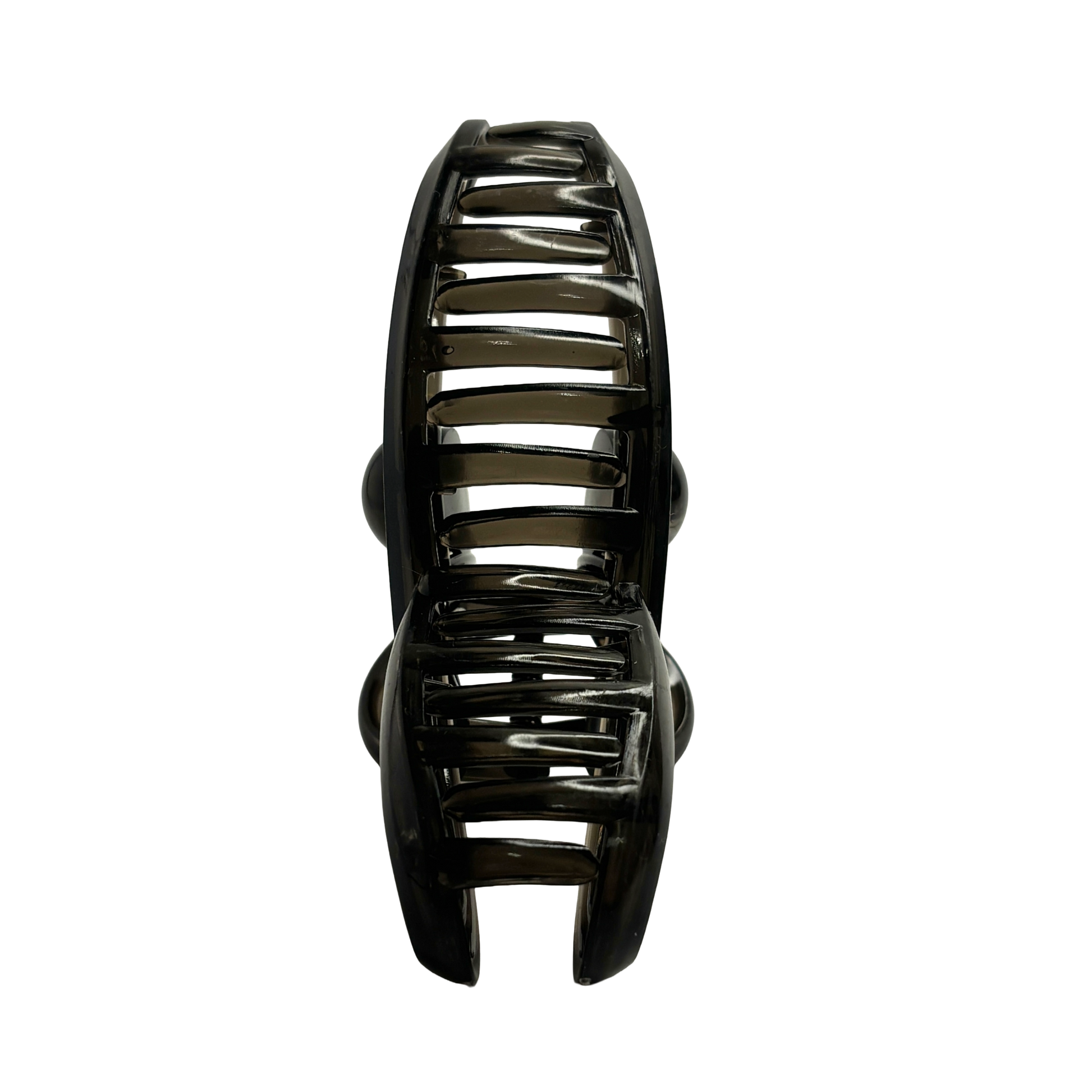 Låt din frisyr inspireras av ett mystiskt morgondis med Mist & Moonstone. Denna klämma är skapad för dig som uppskattar det subtila och unika; den halvtransparenta röktonen i stommen ger ett lätt och luftigt intryck i håret. Det som verkligen utmärker denna modell är de mörka, klotformade accenterna på sidorna. Eftersom dessa kulor är handgjorda äger varje klämma sin egen själ – färgskiftningarna är levande och gör att din accessoar inte är lik någon annans.