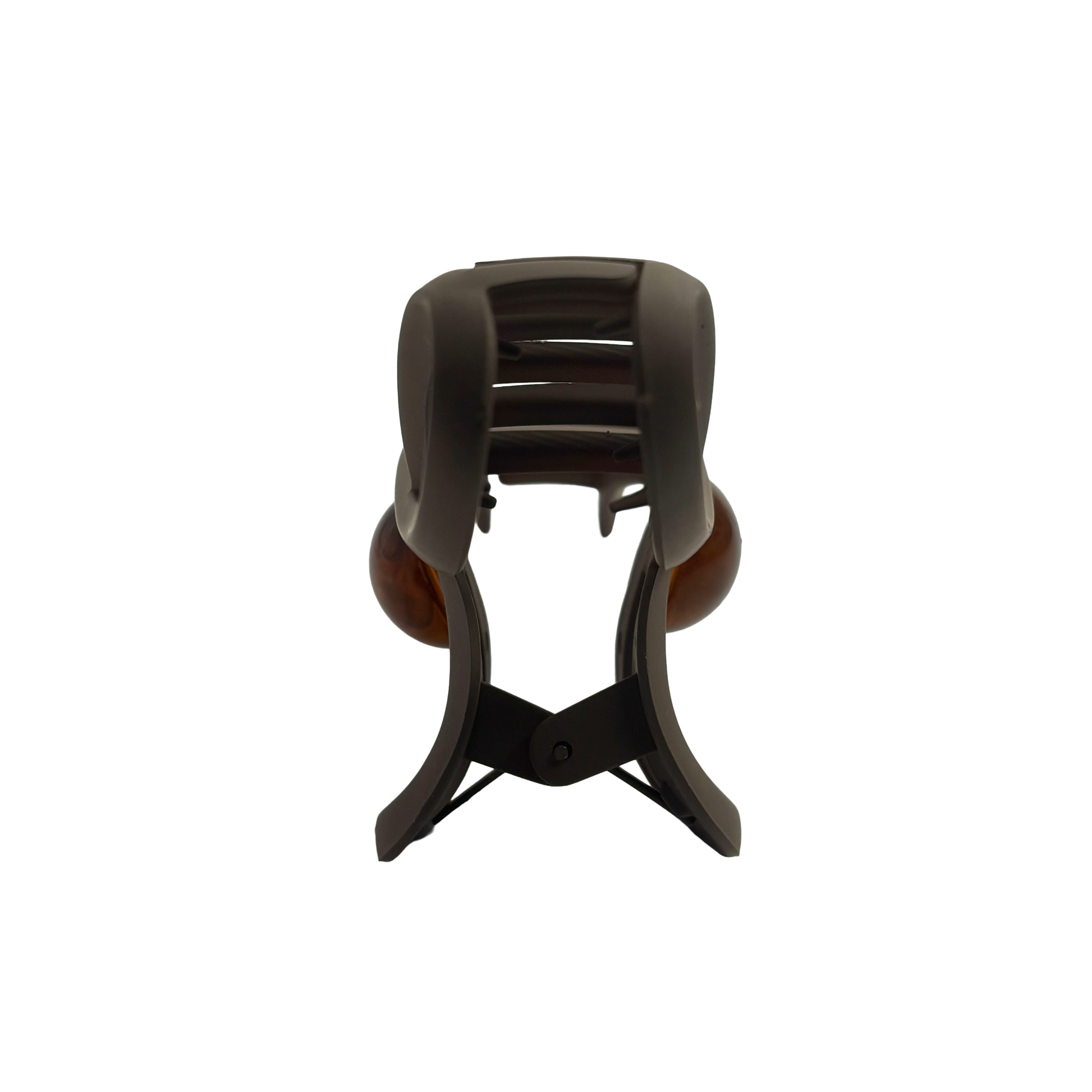 Skapa en sofistikerad kontrast i din styling med Velvet & Gloss Denna hårklämma kombinerar en exklusiv, matt finish på basen med högblanka, glansiga bärnstensfärgade kulor som fångar ljuset på ett vackert sätt. Det är den perfekta accessoaren för dig som uppskattar subtila detaljer och vill ha en look som känns både modern och tidlös.